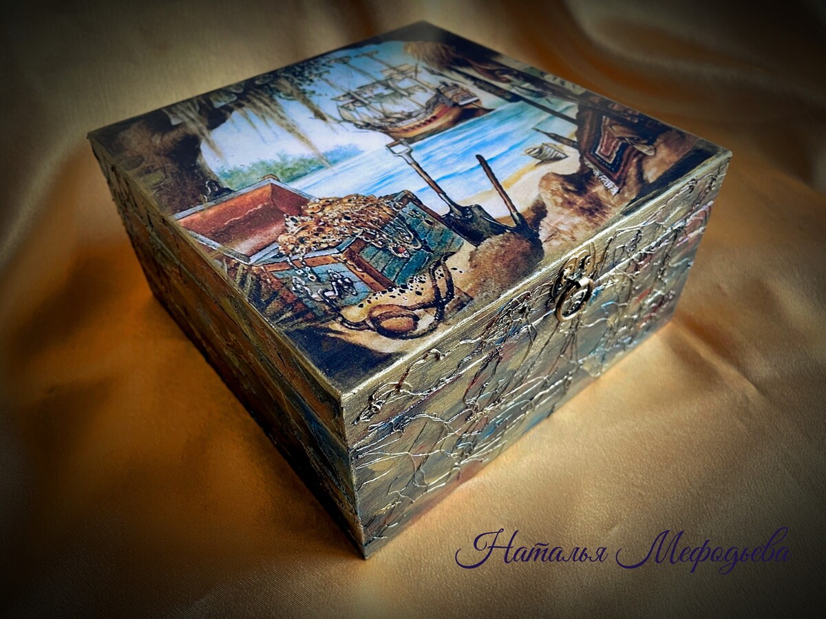 В МК мы с нуля задекорируем деревянную заготовку шкатулки, на которой будем создавать новые фактуры, сочетать их, использовать неожиданные материалы. Займемся интересным многослойным окрашиванием. А еще, проанализировав проблемы и вопросы моих учеников, мы подробнейшим образом займемся лакировкой, выясним ее смысл, принципы и приемы. В очередной раз, учитывая ошибки, с которыми я сталкиваюсь в работах учеников, сделаем качественный декупаж.