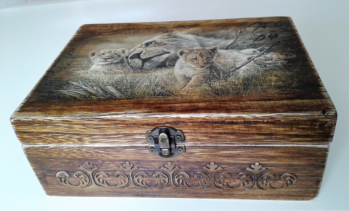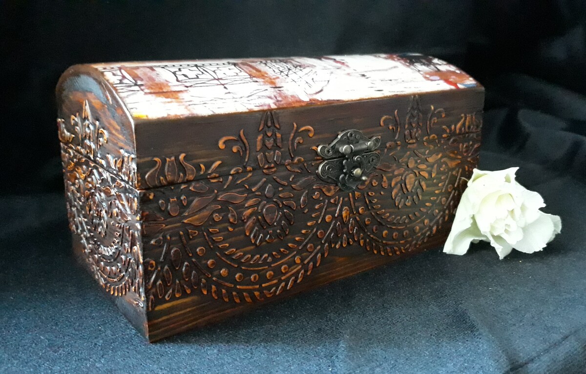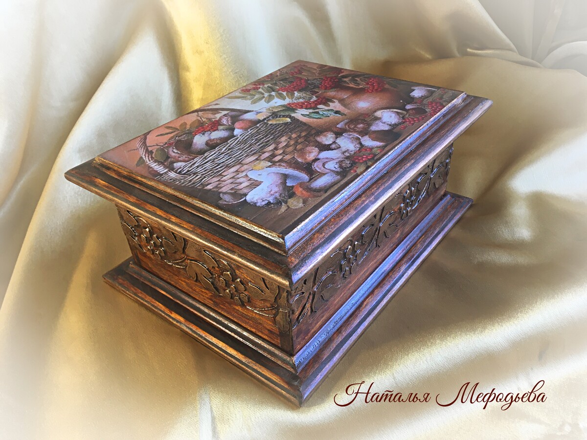 Блок 2: создаем с нуля шкатулку, на которой имитируем резьбу по дереву, делаем декупаж, подрисовку, лакировку