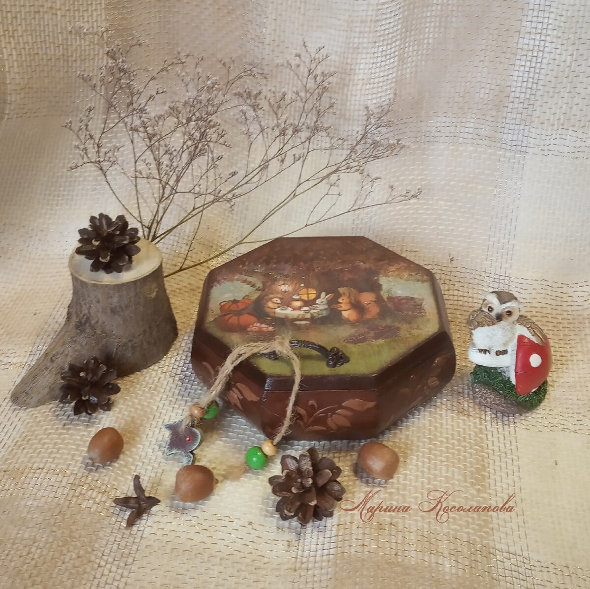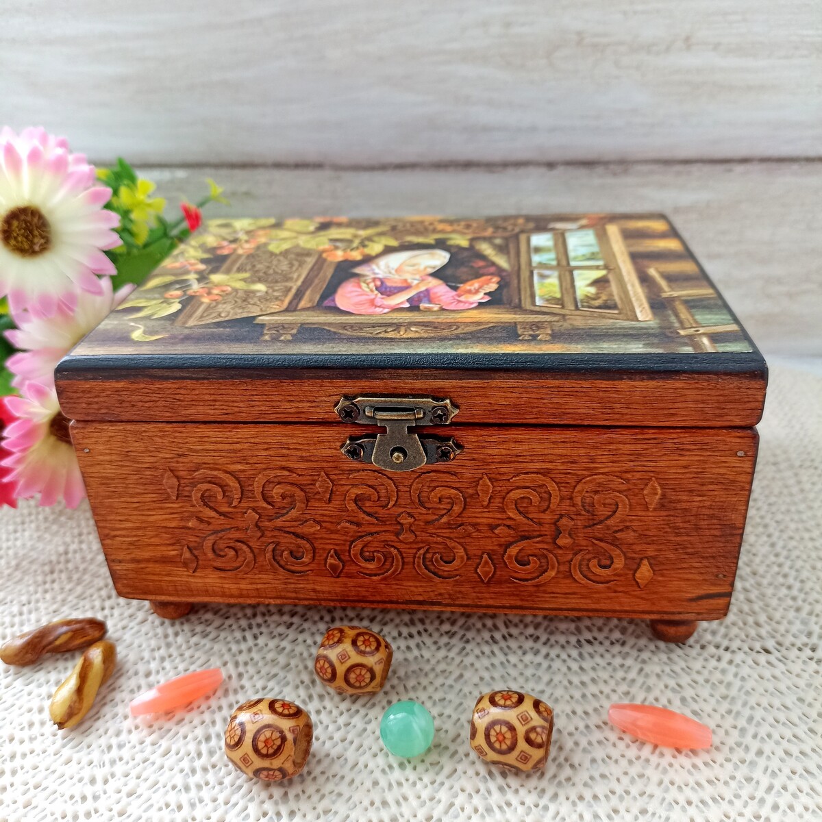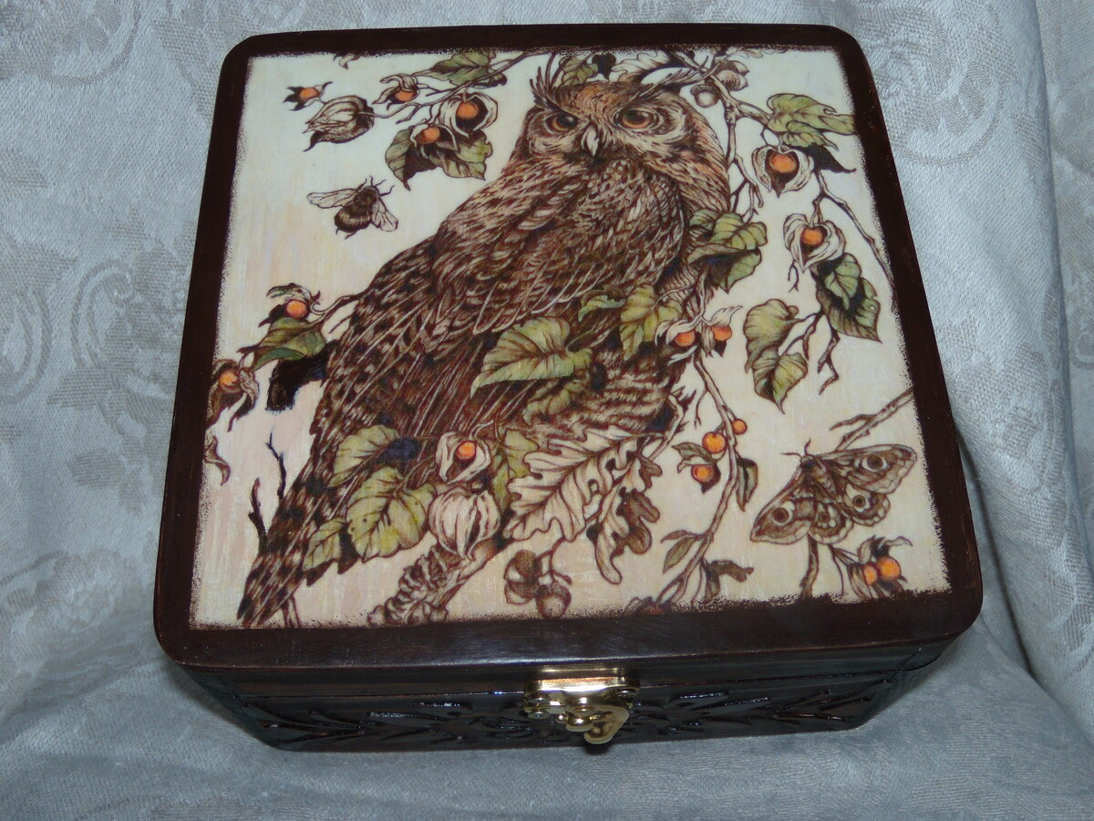 Блок 2: создаем с нуля шкатулку, на которой имитируем резьбу по дереву, делаем декупаж, подрисовку, лакировку