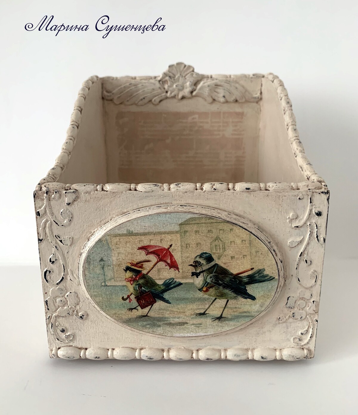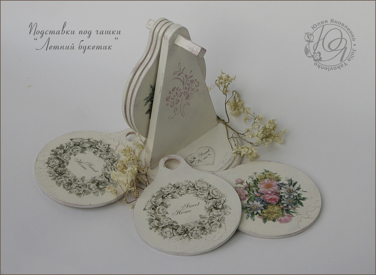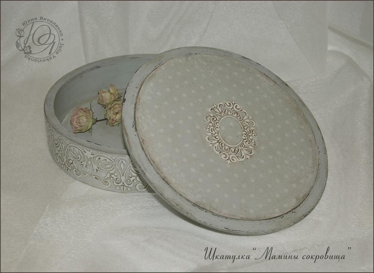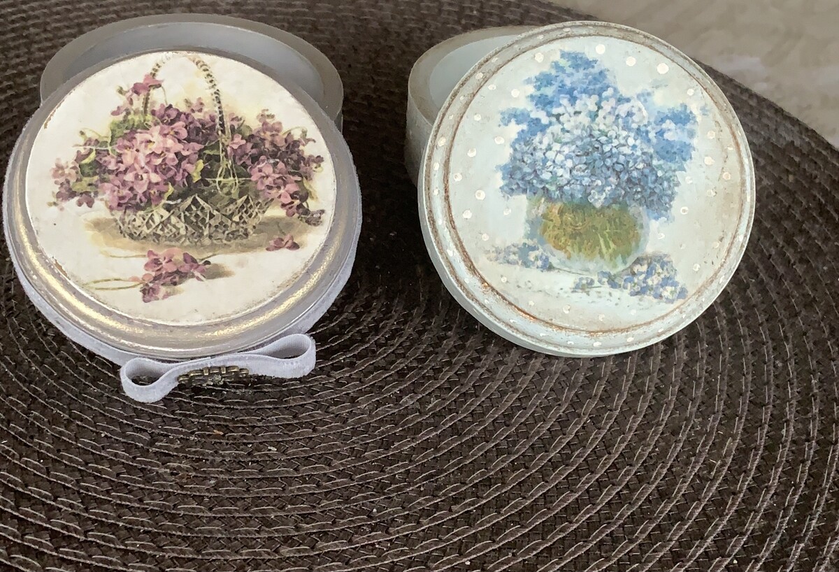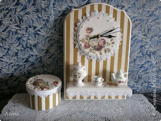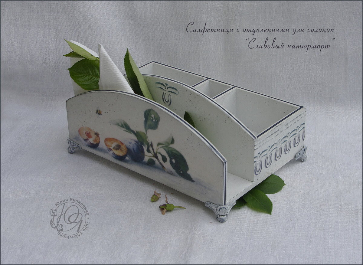 - декупаж не только на прямой поверхности, но и на боковинах круглой заготовки