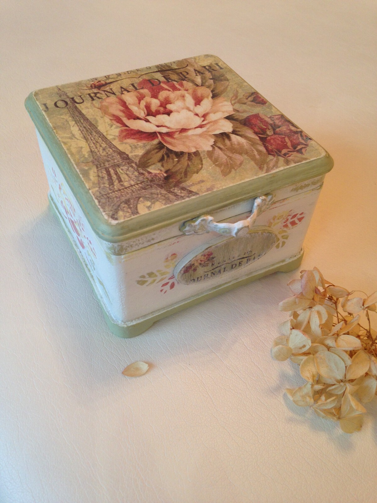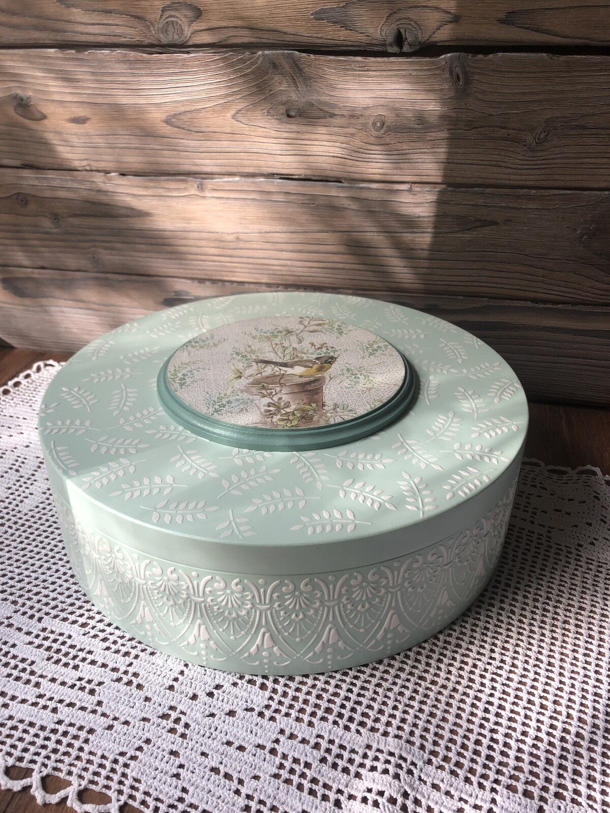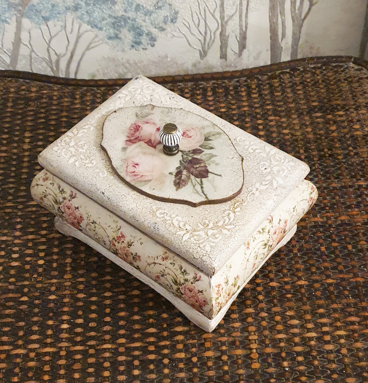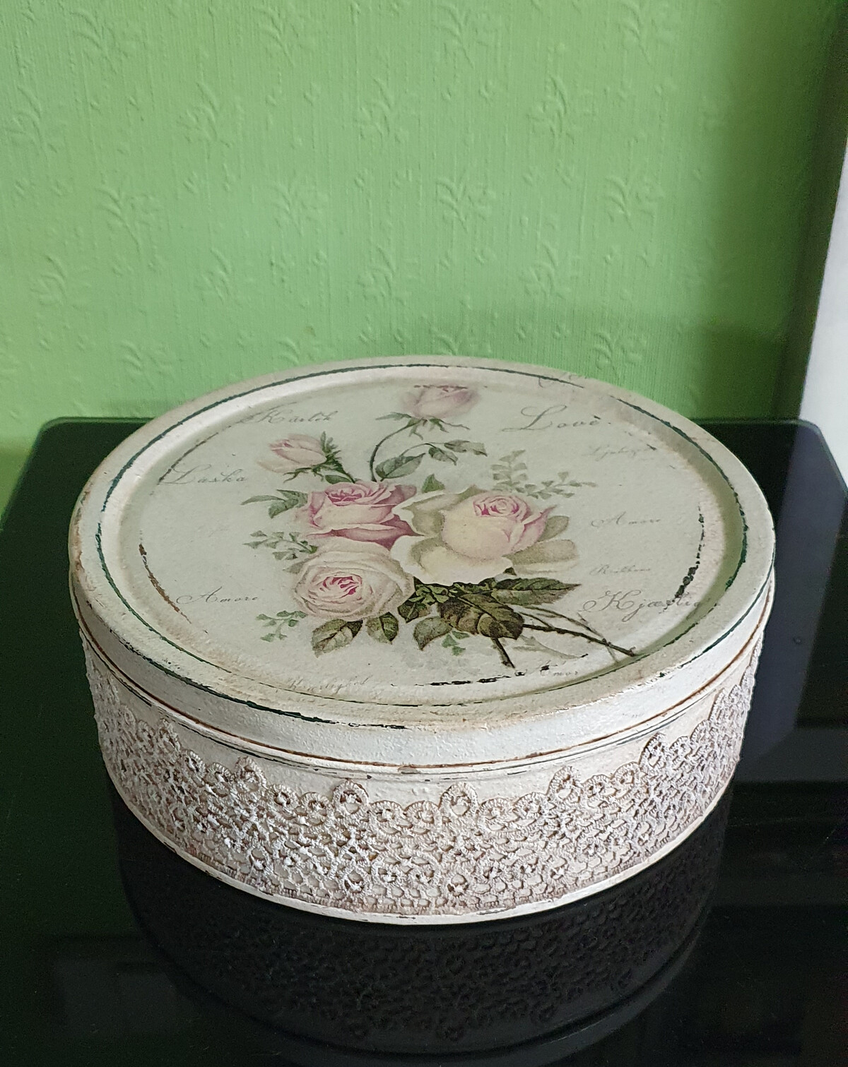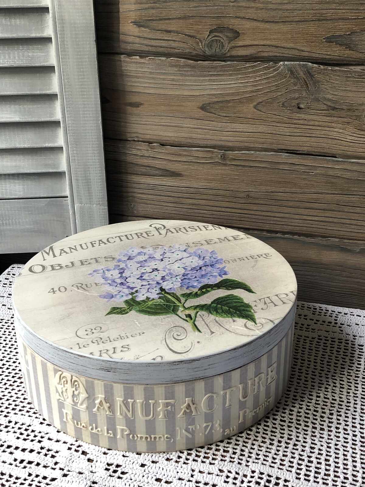 - декупаж не только на прямой поверхности, но и на боковинах круглой заготовки
